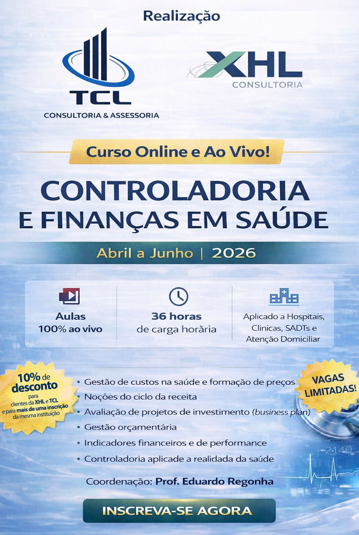 Data: Abril e Junho – On-line (36 Horas) Aplicado a Hospitais, Clínicas, SADTs, Atenção Domiciliar, dentre outros OBJETIVO GERAL Com as constantes intempéries que passa o sistema de saúde, a necessidade de controles econômicos – financeiros de forma dinâmica e confiável tornaram-se imprescindíveis. Os mecanismos para uma adequada gestão do caixa, o conhecimento dos custos